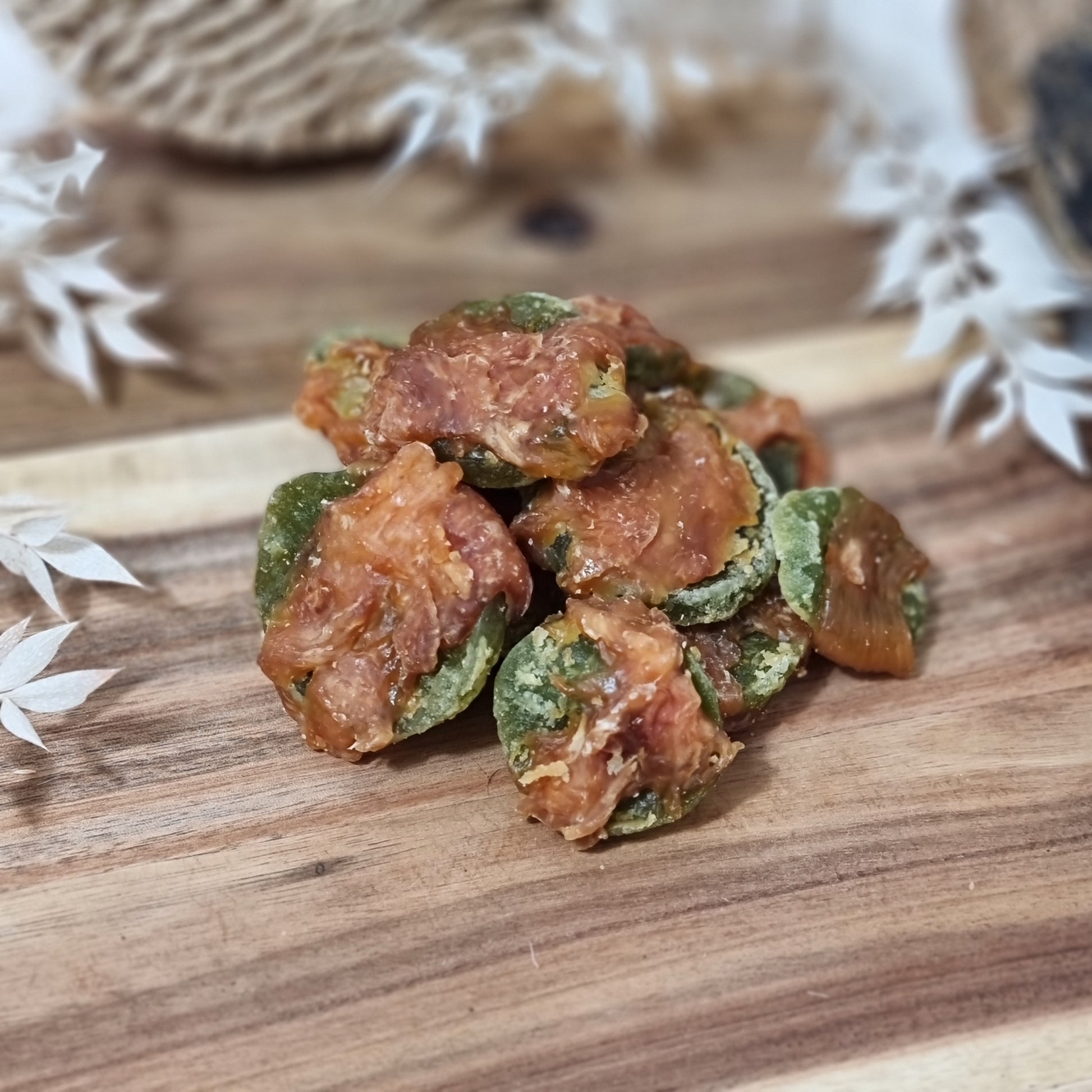A great and firm favourite, soft dried apple pieces wrapped in Chicken