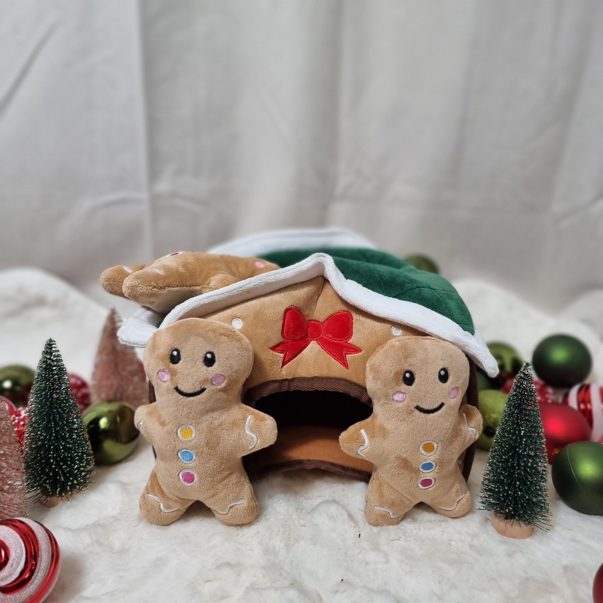 Bring some Christmas magic to your pup’s playtime with the Gingerbread House Burrow & Hide Dog Toy! This interactive toy features a charming gingerbread house design with hidden compartments to encourage your dog’s natural burrowing instincts.