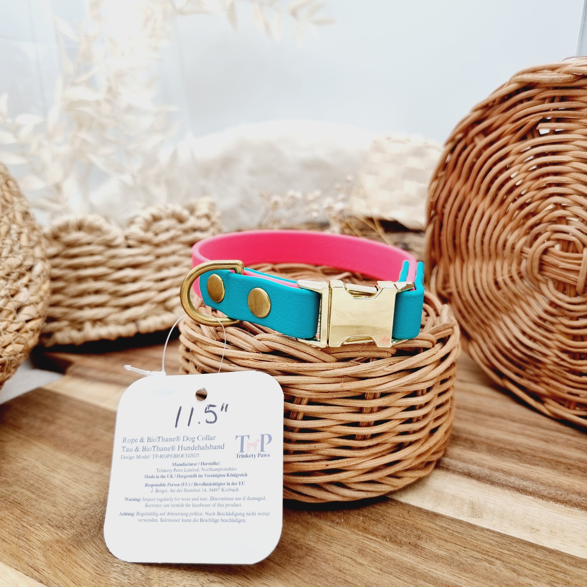 Bold, durable, and beautifully distinctive - our two-coloured BioThane® Dog Collars are a true signature of the Trinkety Paws™ brand. Each collar pairs two perfectly balanced shades to create a stylish, contemporary look that celebrates individuality. Soft yet strong, waterproof, odour-resistant, and easy to clean, it’s built for all-weather comfort.