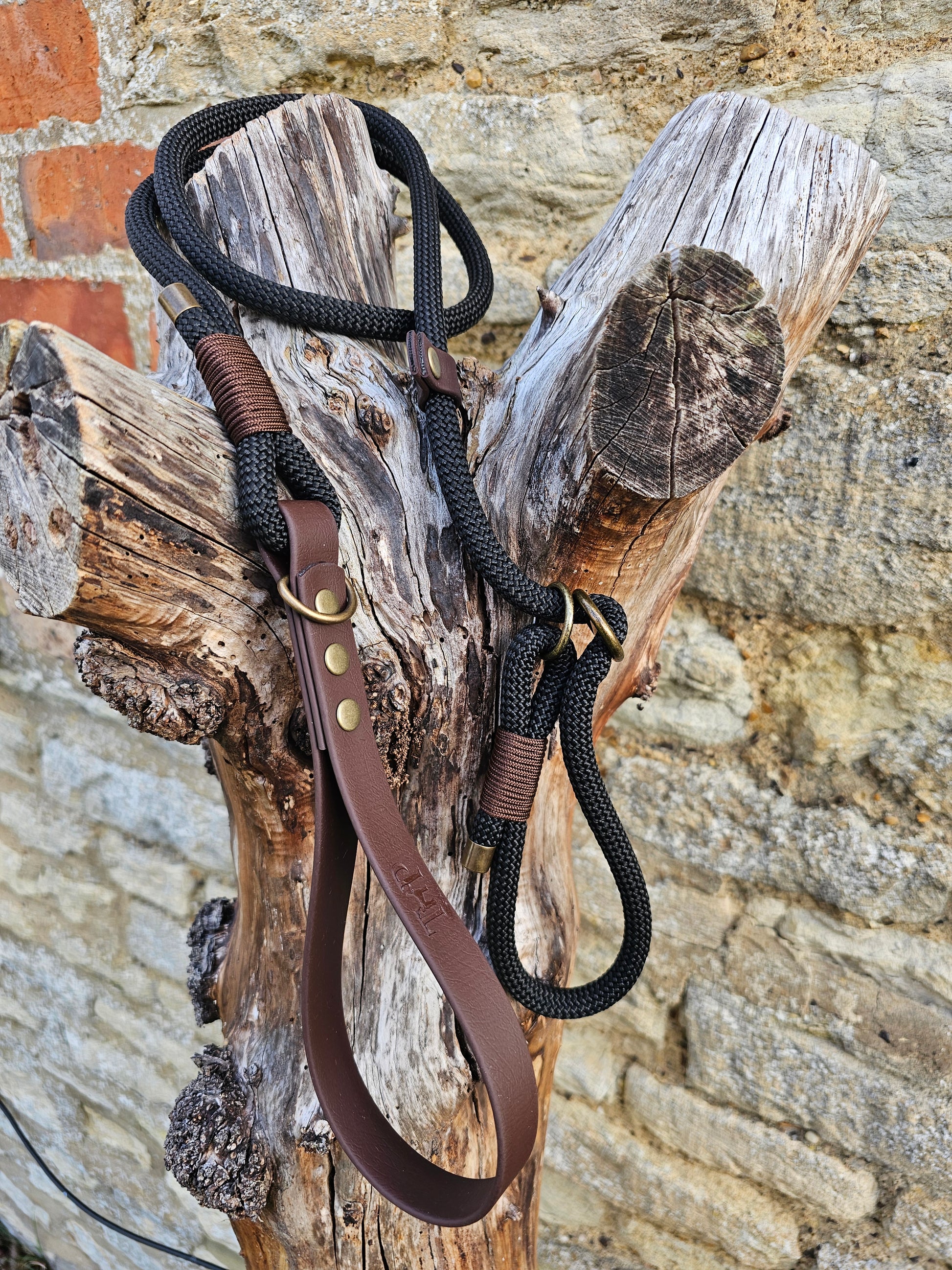 Black & Dark Brown - Classic Rope Slip Lead / Figure 8 Dog Lead