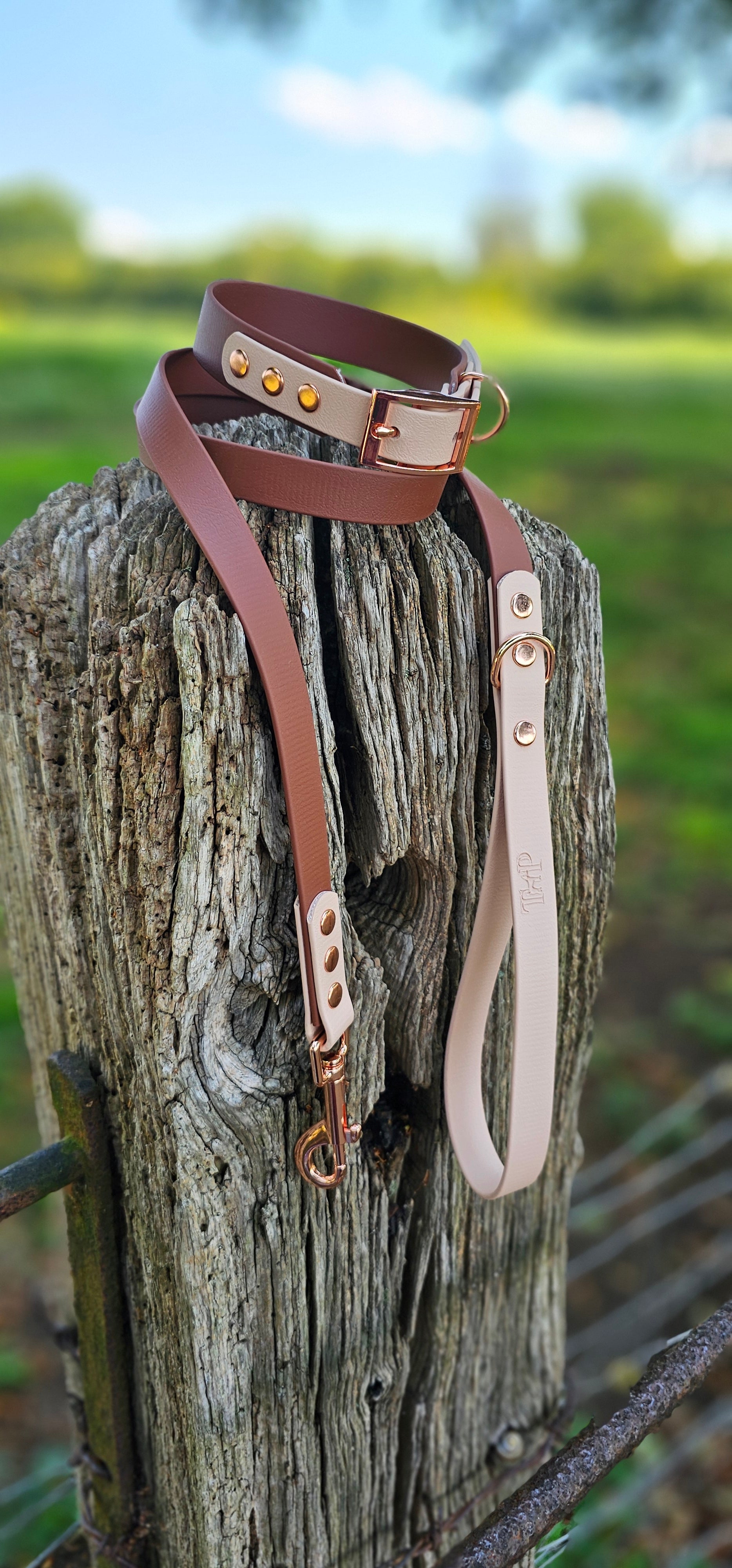 Brown & Powder Pearl - Waterproof BioThane® two-coloured Dog Lead by Trinkety Paws™