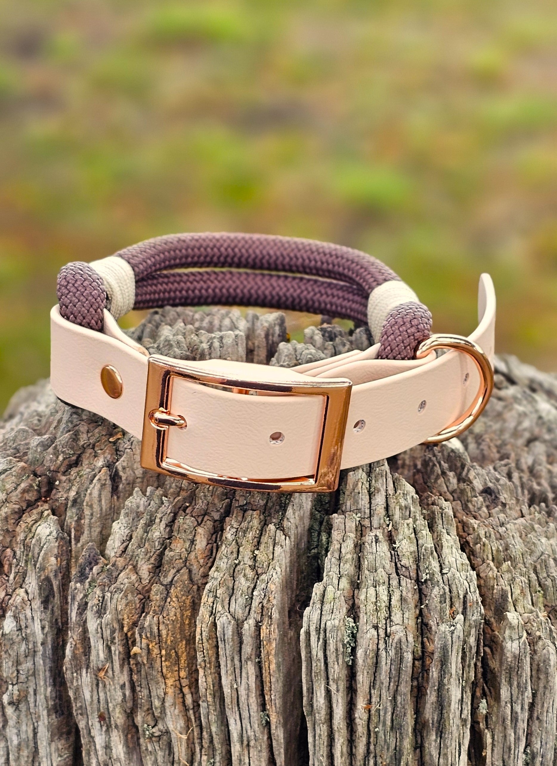 Dark Brown & Powder Pearl - Classic Rope Dog Collar