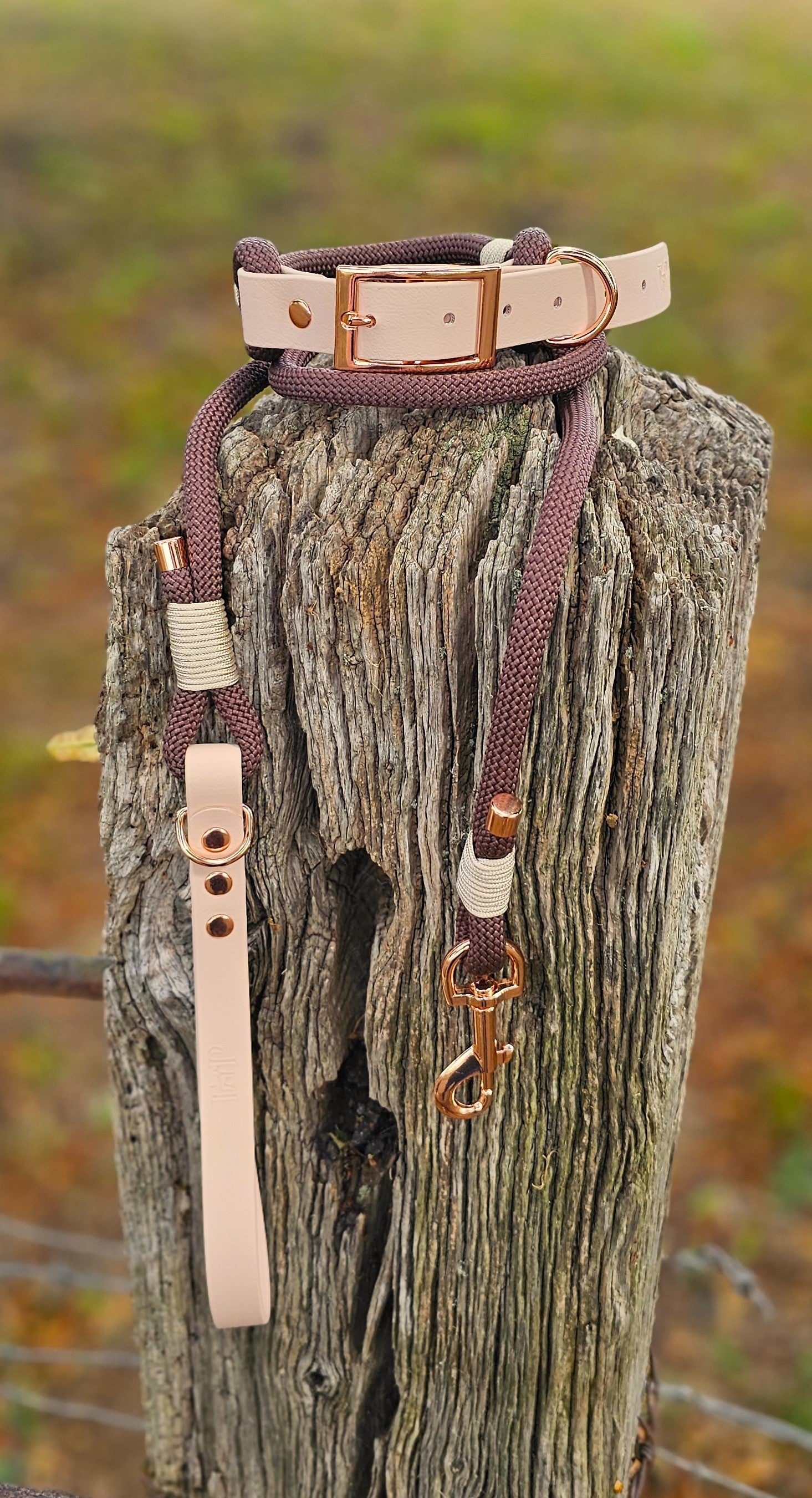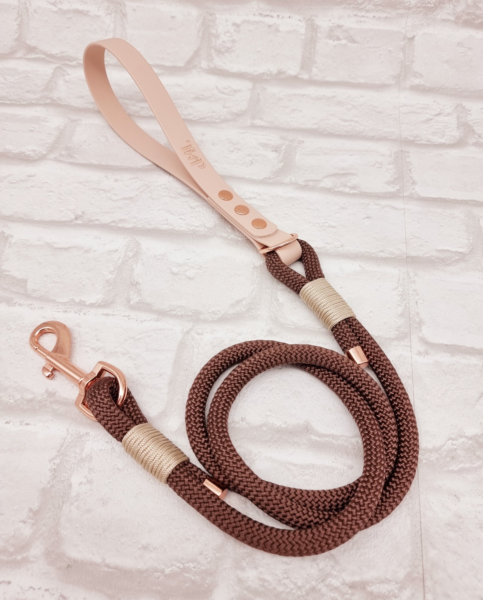 Dark Brown & Powder Pearl - Classic Rope Dog Lead