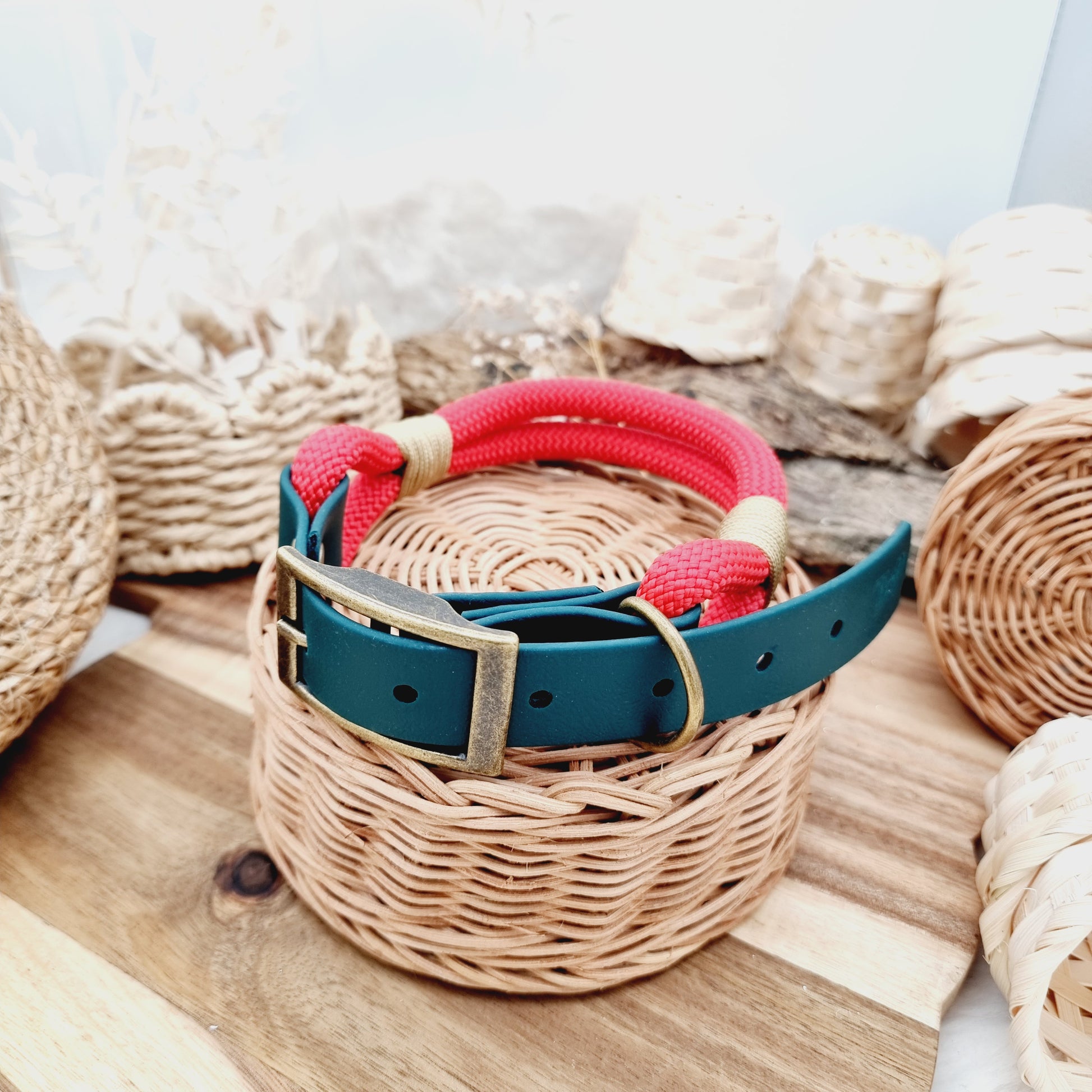 Red & Dark Green (Size Large) - Rope Biothane Dog Collar