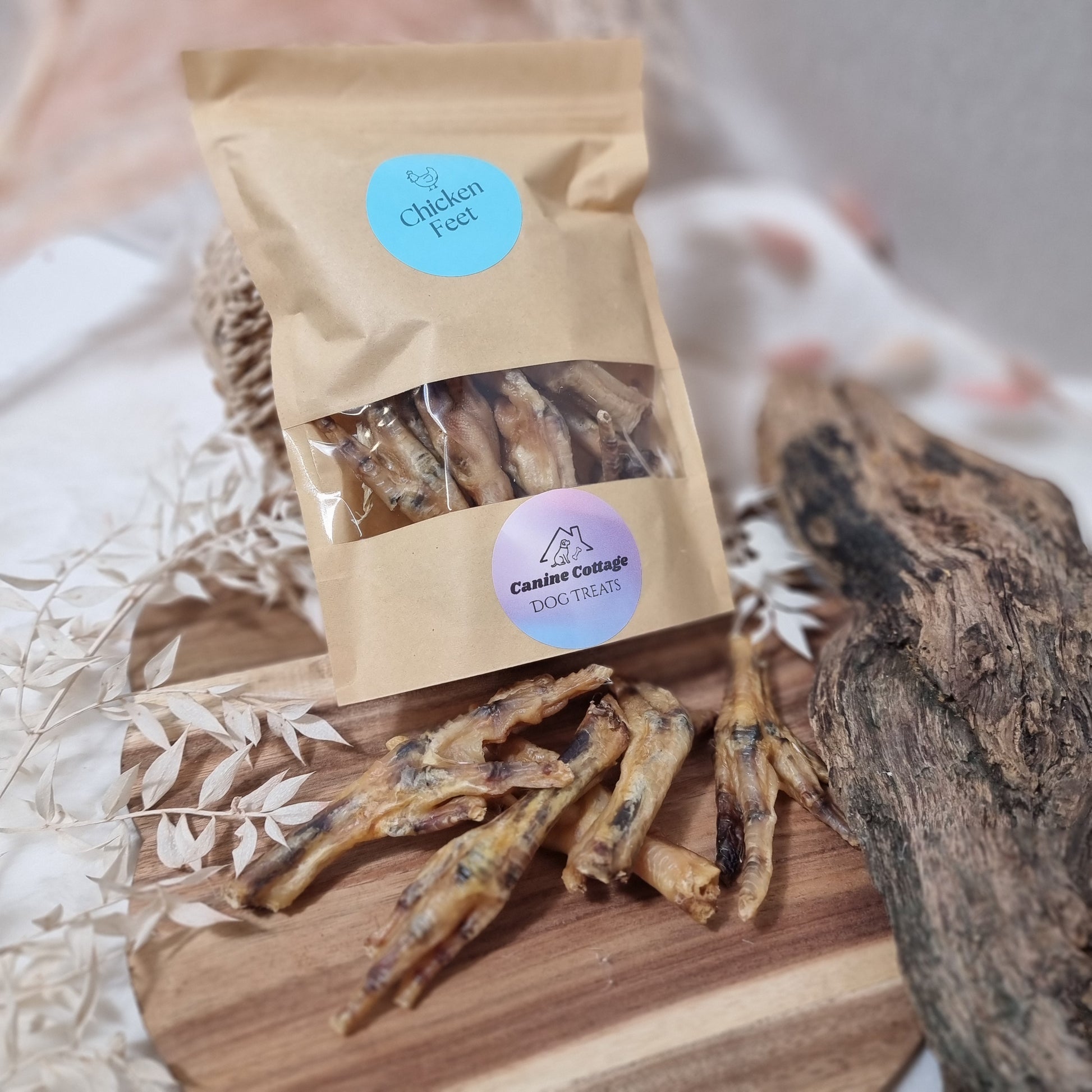 Our Chicken Feet are cooked then air-dried, thus retaining their natural flavour. They offer a quick, crunchy snack whilst providing a natural source of glucosamine and chondroitin, key in promoting healthy joints.