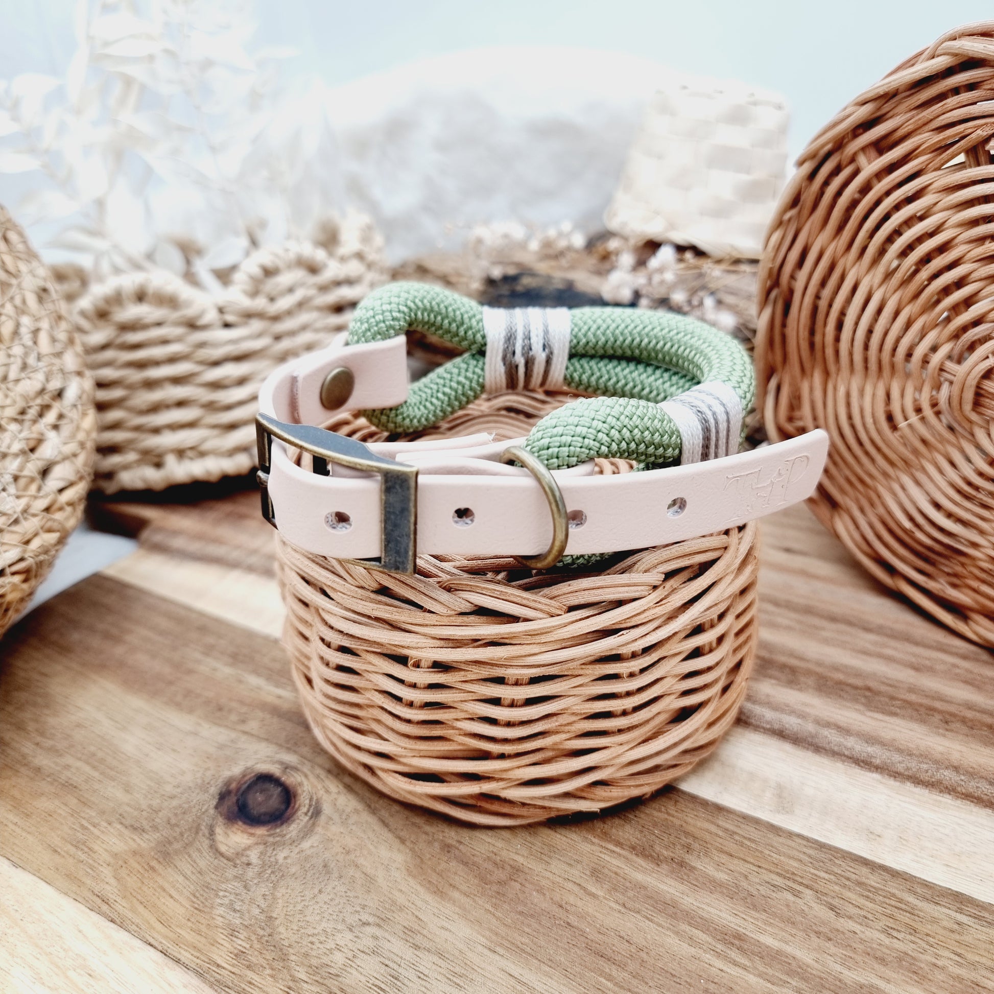 Avocado & Powder Pearl (Size Small) - Rope Biothane Dog Collar