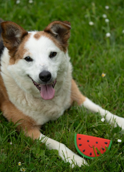 Latex Watermelon Dog Toy with a cute smiley face and a built in squeaker. Perfect for playful dogs. Great for the game of fetch and encouraging your pet's interactive playing and training. Cute, strong and durable.