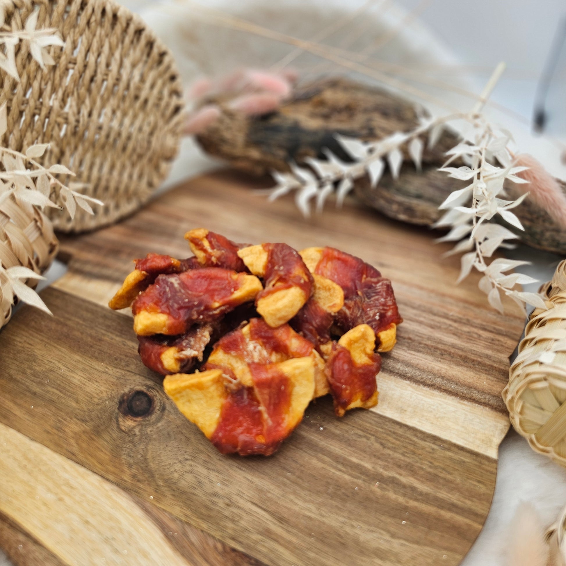 A great and firm favourite, soft dried apple pieces wrapped in Chicken