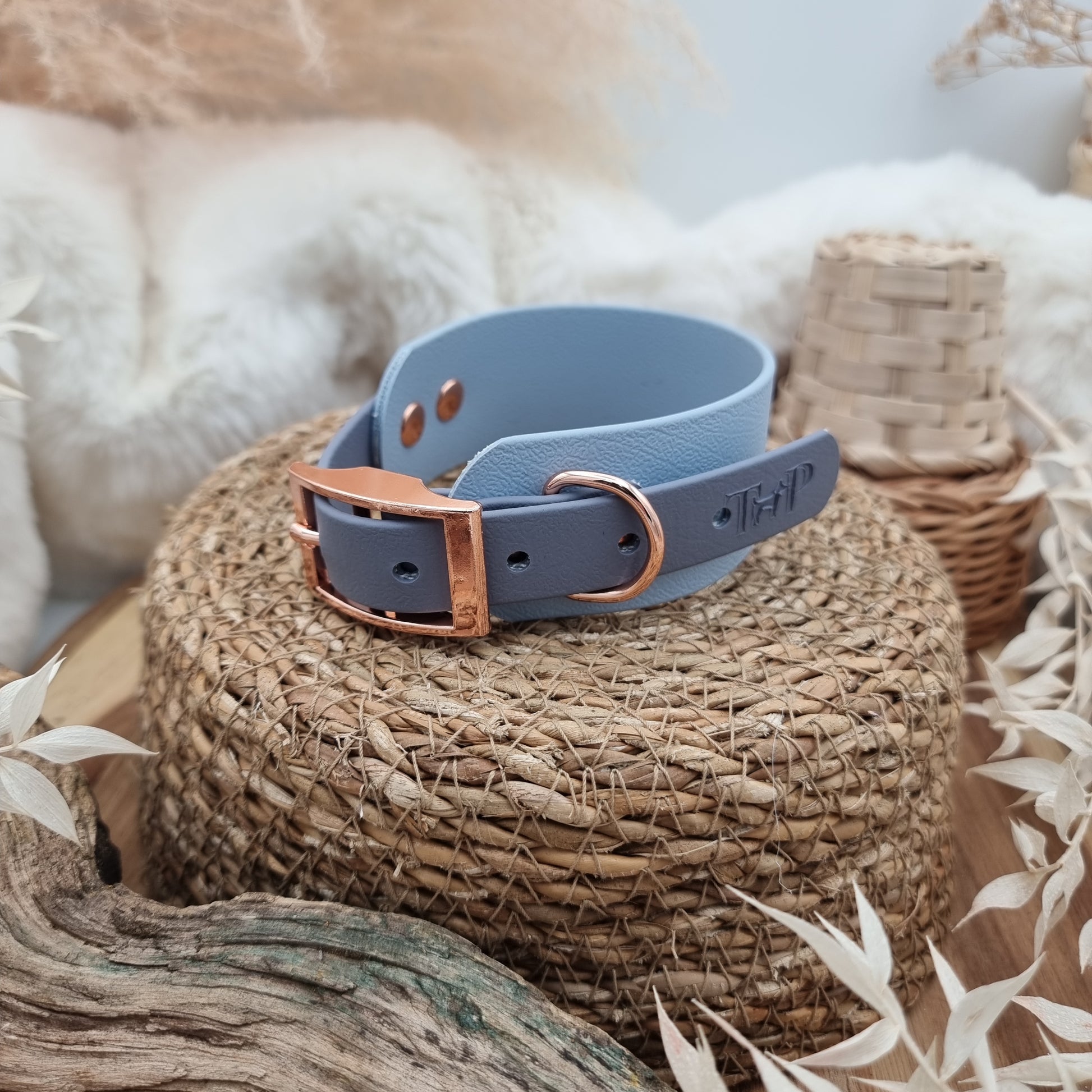 Size S - Baby Blue & Grey, Rosegold Hardware - two-coloured Biothane Sighthound Collar