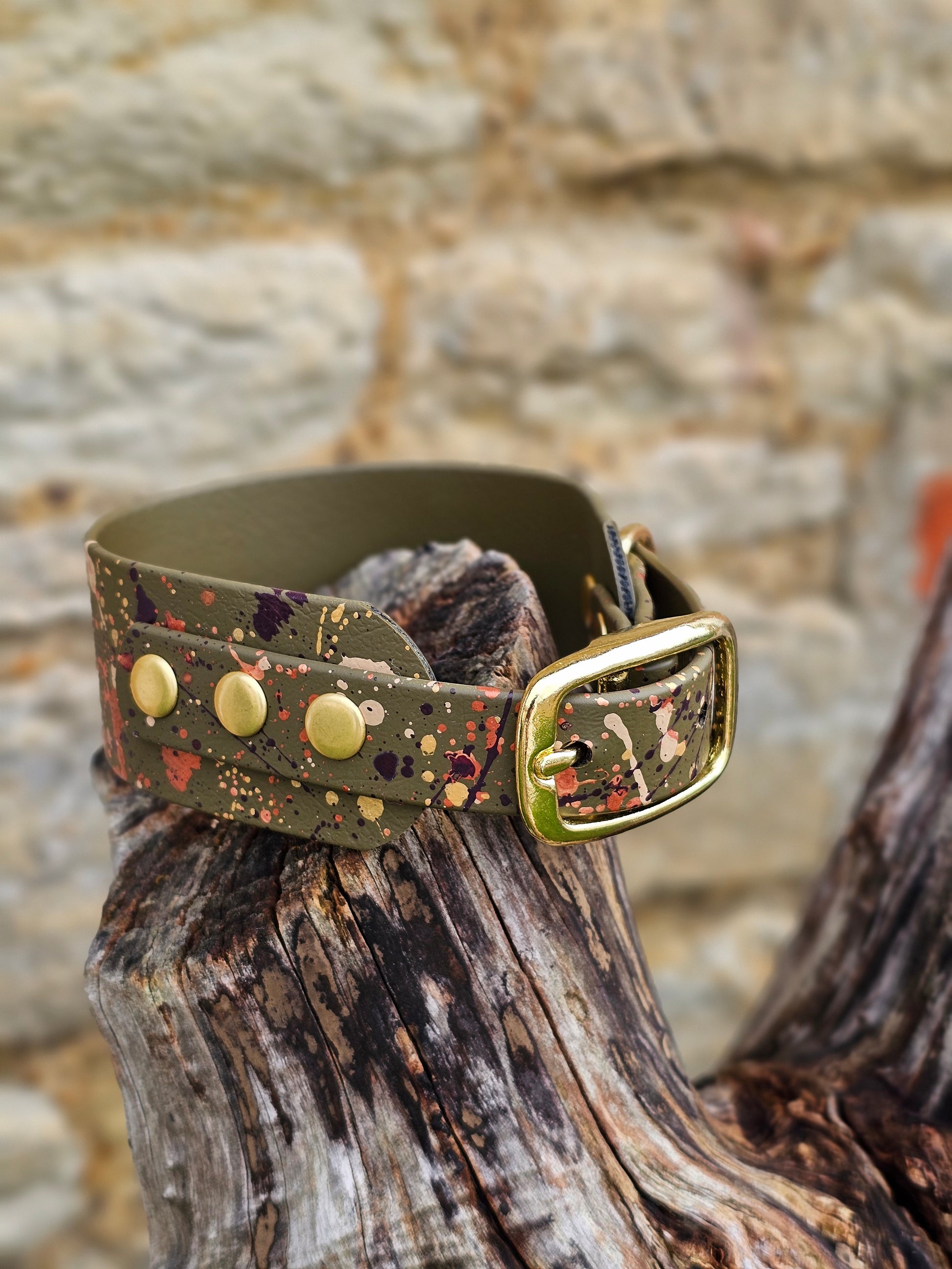 🐾 Hand-splattered metallic finish – Every collar is one of a kind