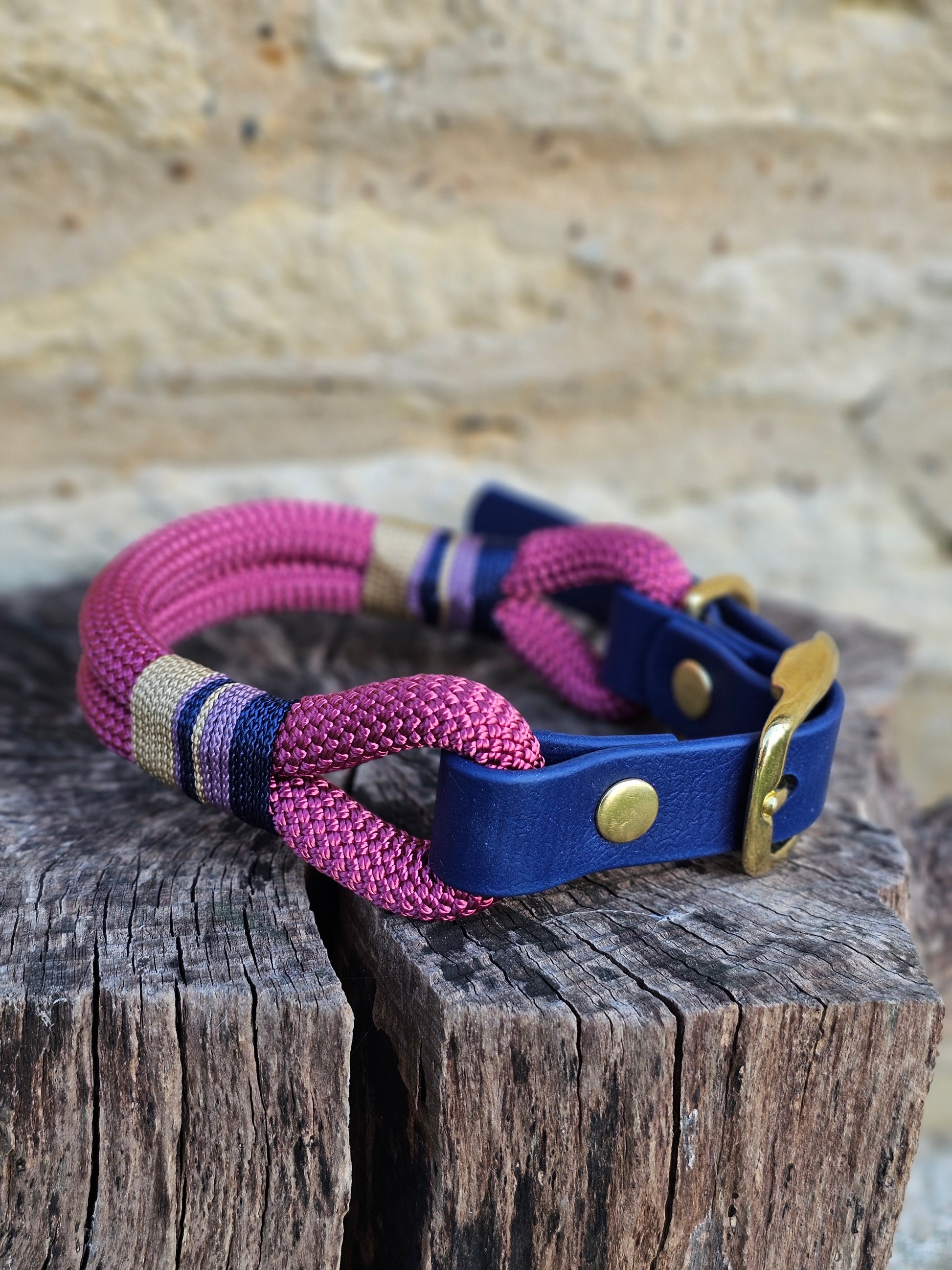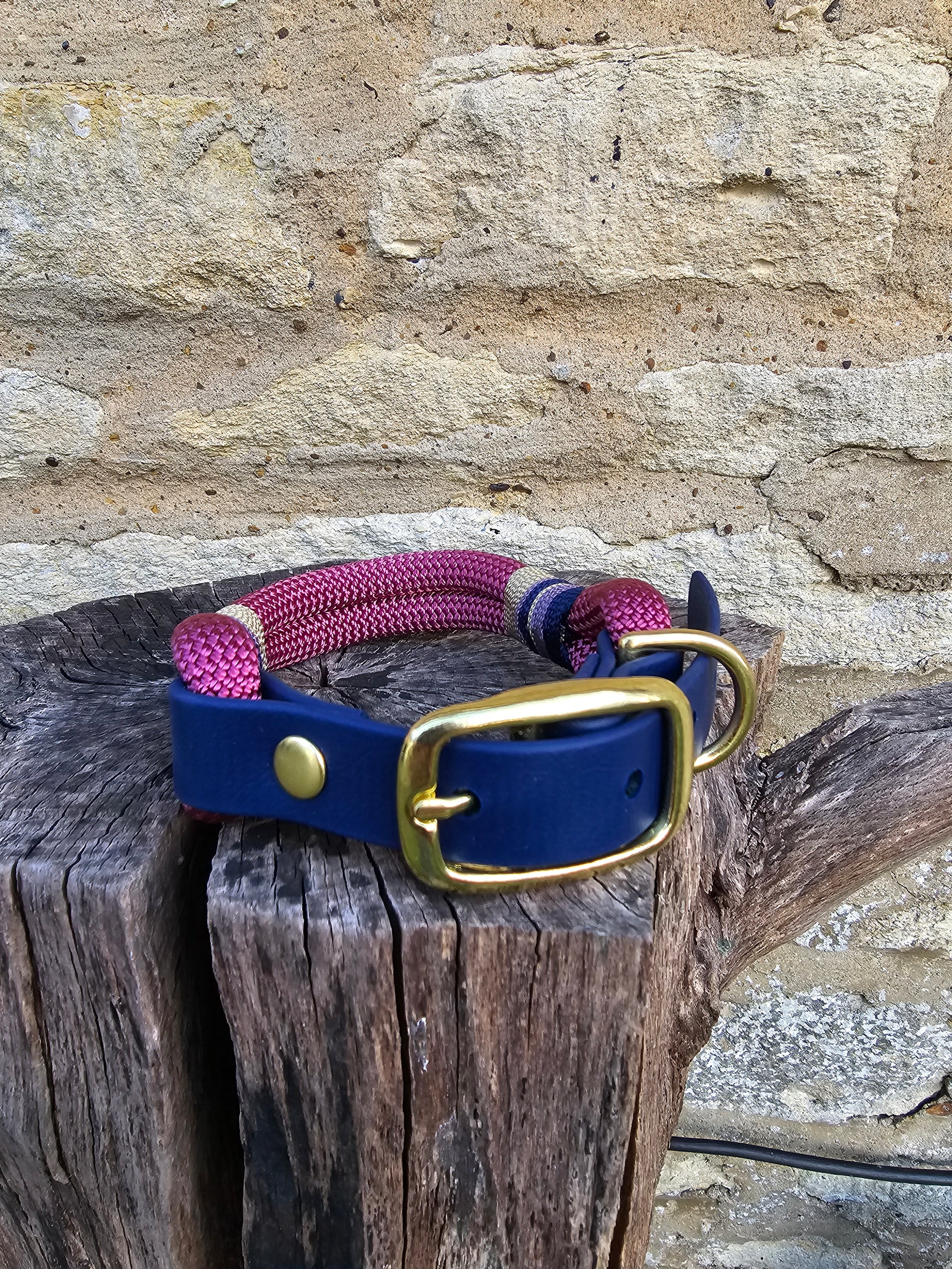 The Oxford Collar is a modern classic - crafted for those who appreciate subtle luxury and effortless style. Handcrafted in the UK, it features deep burgundy premium rope paired with a sleek navy BioThane® strap and solid gold brass hardware, striking the perfect balance between strength and sophistication.