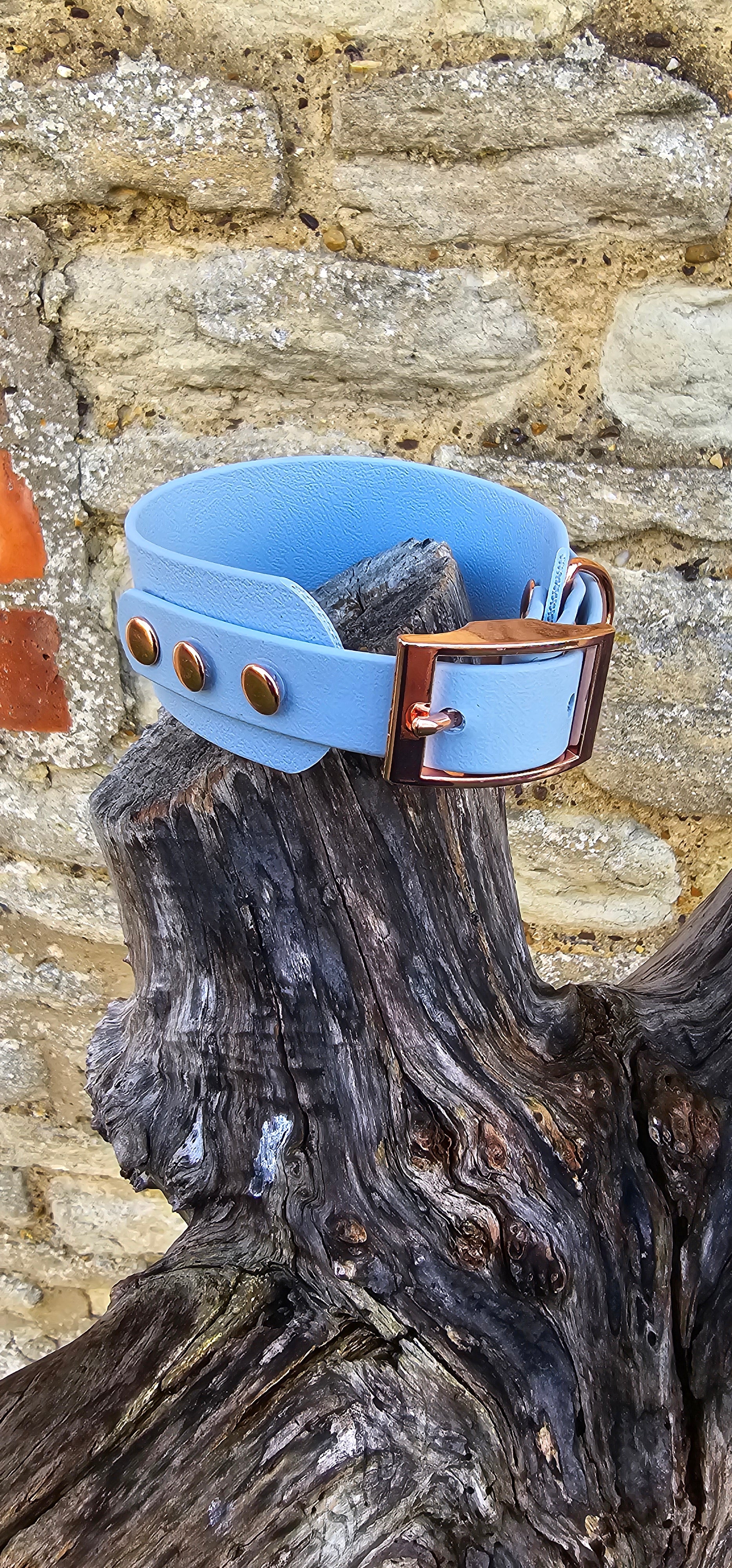 Baby Blue - Waterproof BioThane® Sighthound Collar / wide-fit Dog Collar