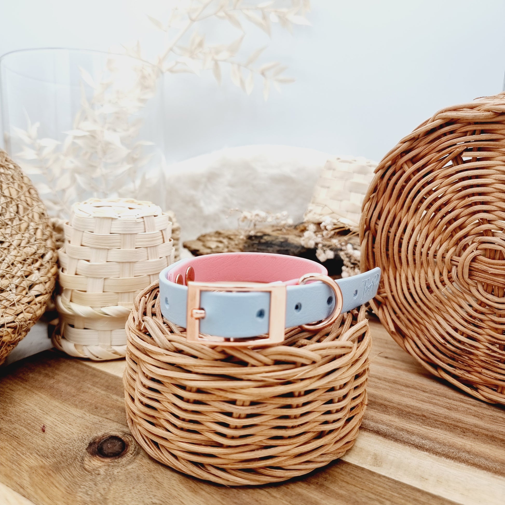 Baby Pink & Baby Blue (RG) Size XS - two-coloured Biothane Dog Collar