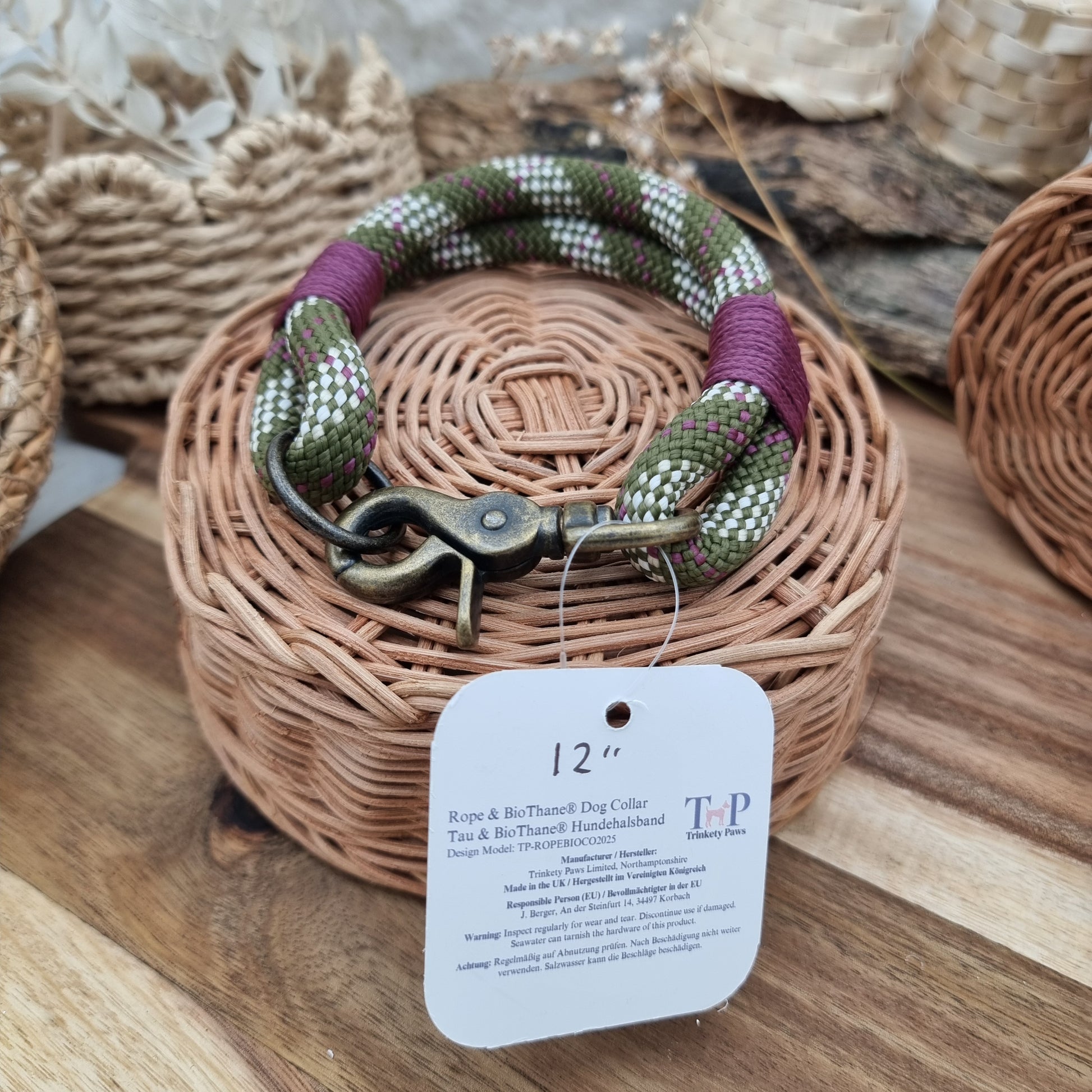 Rope Dog Collar - Green Tweed - (Fits Neck Size 11" Range XS)