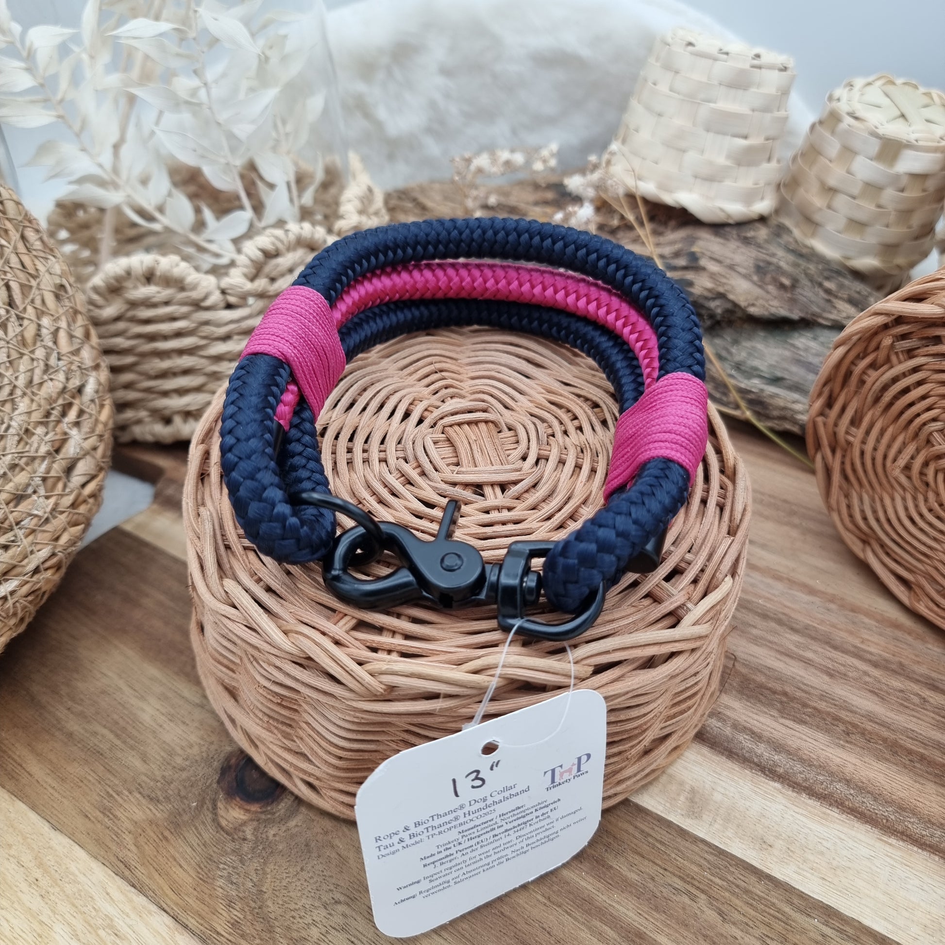 Rope Dog Collar - Navy & Magenta- (Fits Neck Size 12" - Range S)