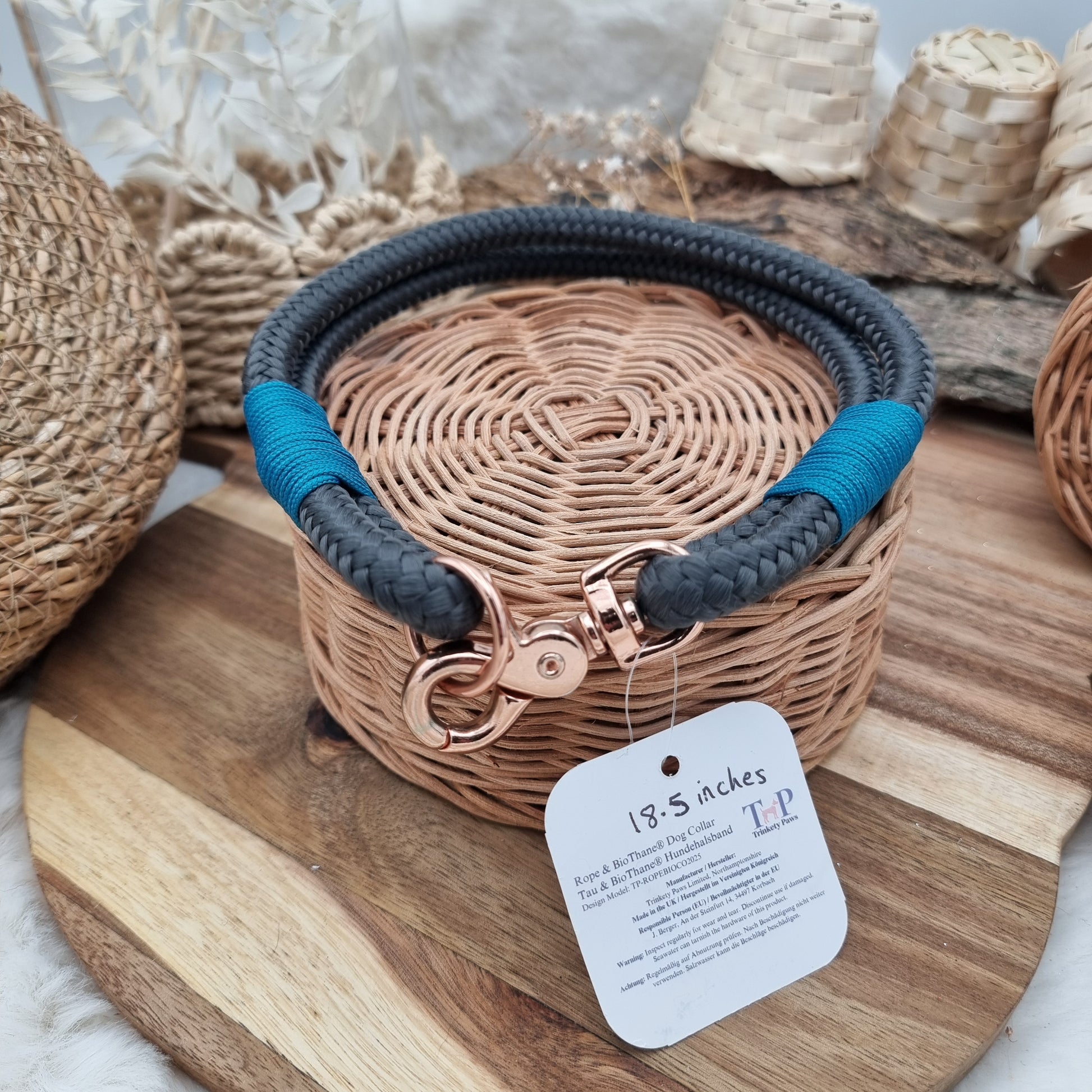 Rope Dog Collar - Navy & Blue - (Fits Neck Size 17" - Range L)