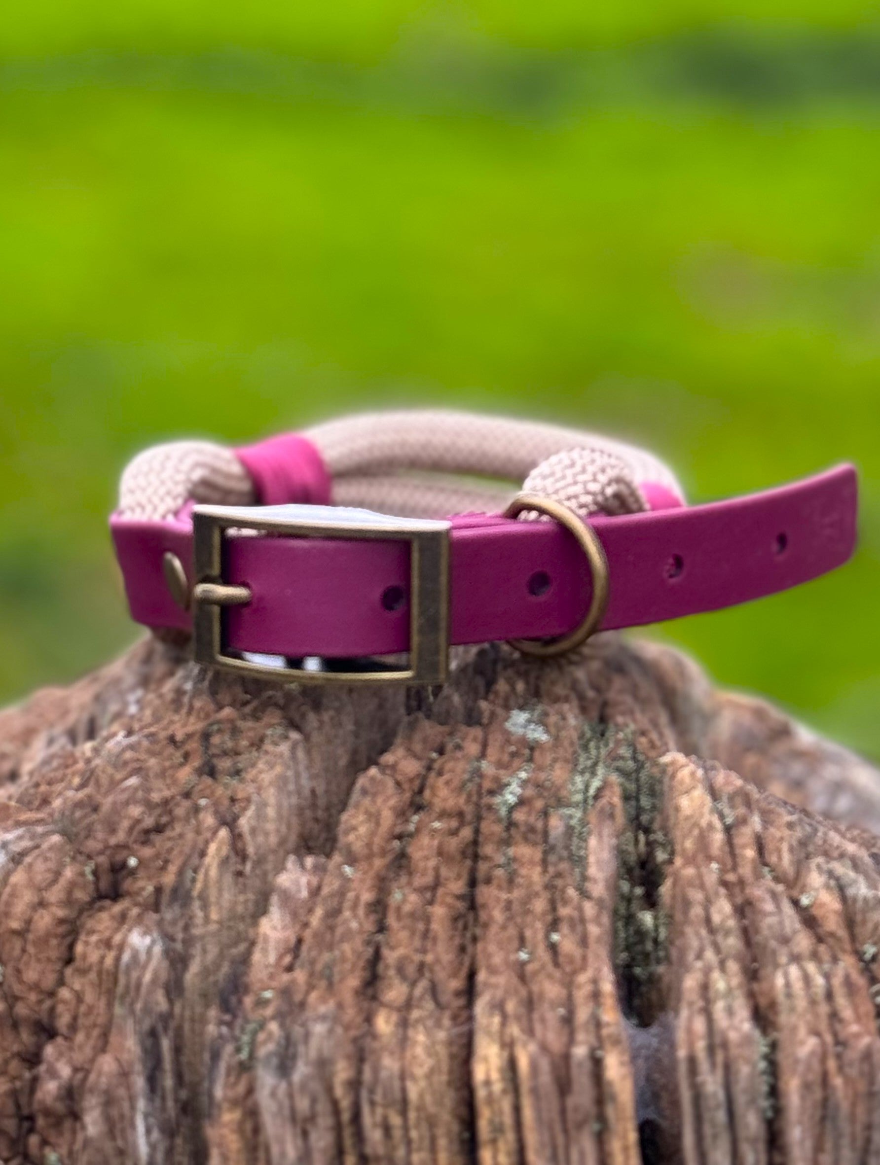 Where timeless design meets everyday practicality - the Classic Rope Dog Collar blends our signature attention to detail with a modern finish and design. Handcrafted in the UK, our Classic Rope Dog Collars pair premium polypropylene rope with genuine waterproof BioThane®, combining two trusted materials for strength, comfort, and style. Each collar is fully adjustable, and available in a range of sizes to suit small to extra large breeds.