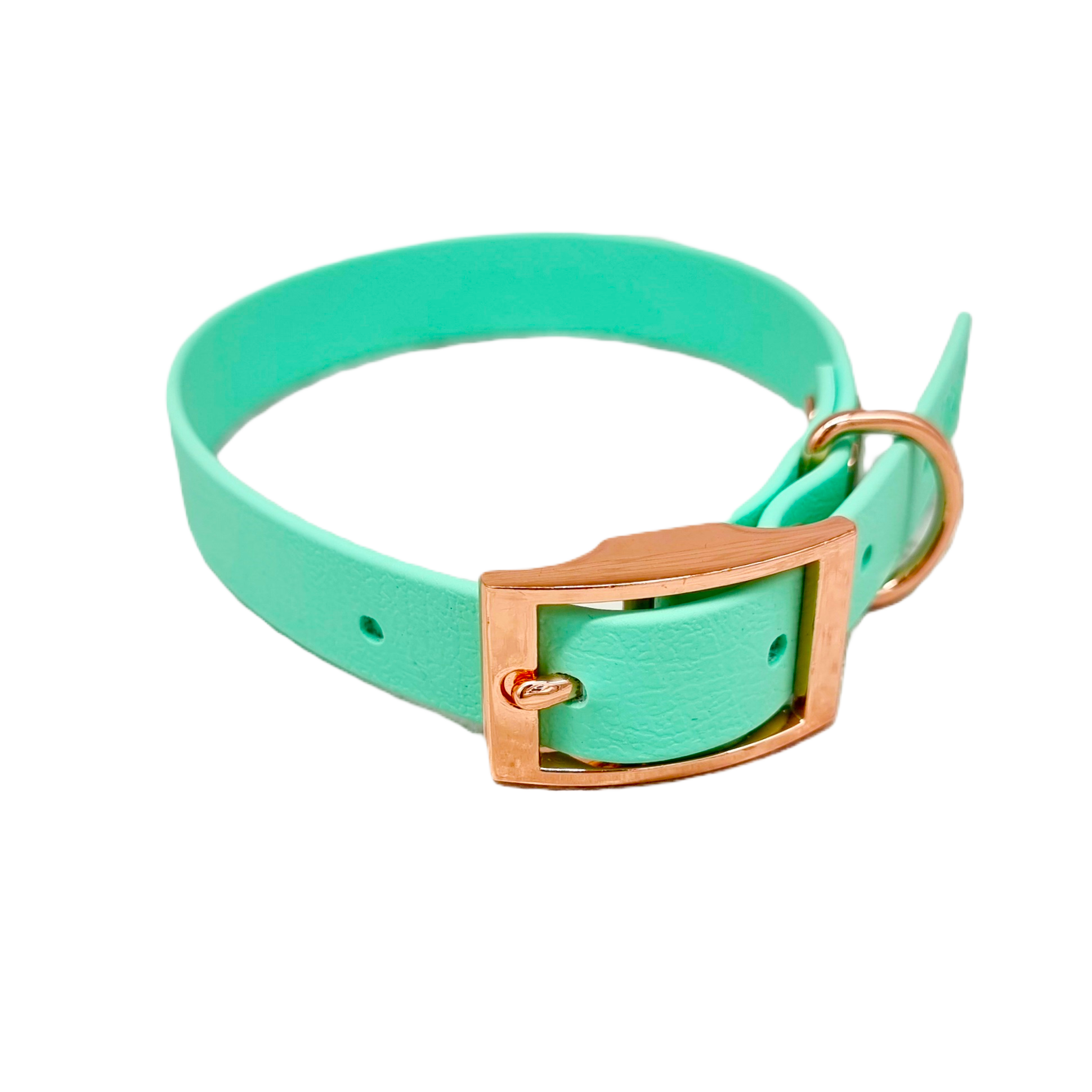 Understated, timeless, and built to withstand every adventure – our Mint BioThane® Dog Collar is a true everyday essential. With its sleek, classic design, it delivers the same exceptional all-weather performance as our statement styles, but in a versatile single colour that suits any dog, any occasion.