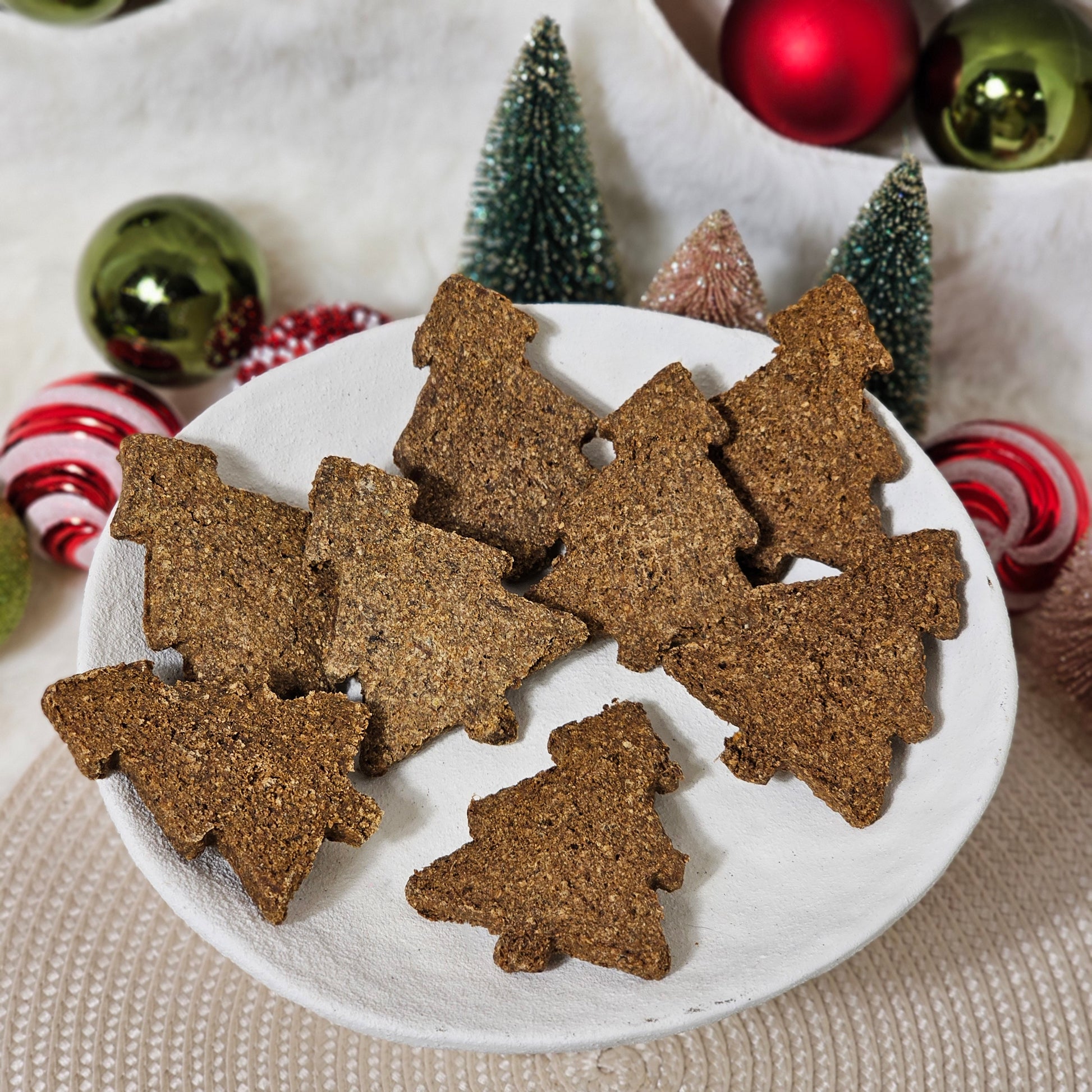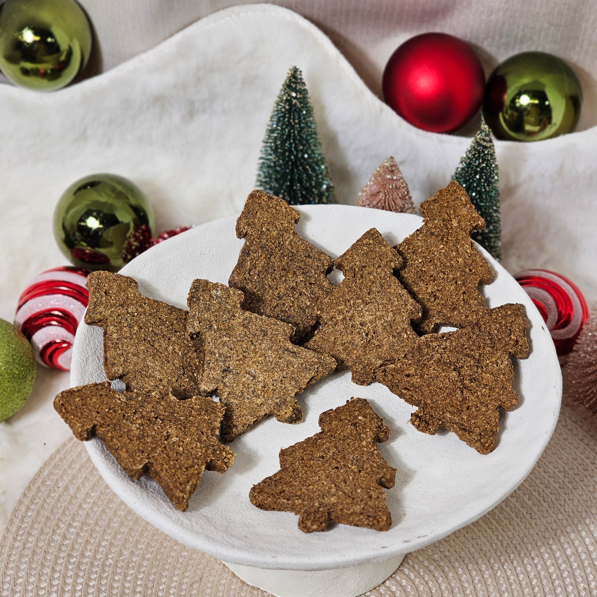 Treat your pup to a festive feast with our Gourmet Christmas Tree Treats, crafted from premium turkey, chicken and cranberry. These festive delights are shaped like Christmas trees and made with real, high-quality meats to offer a rich, savoury flavour. Perfect for gifting or as a special seasonal snack, each treat is grain-free and gently dried to preserve nutrients and taste. Whether you're filling a doggy stocking or celebrating together, these wholesome treats bring joy and flavour to your furry friend’s holiday season. Made with love and natural ingredients -because your dog deserves the best.