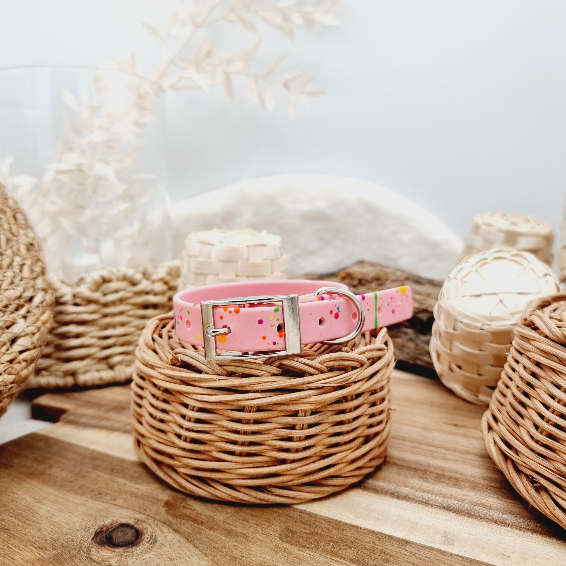 Baby Pink & Neon Splashes - Biothane Dog Collar