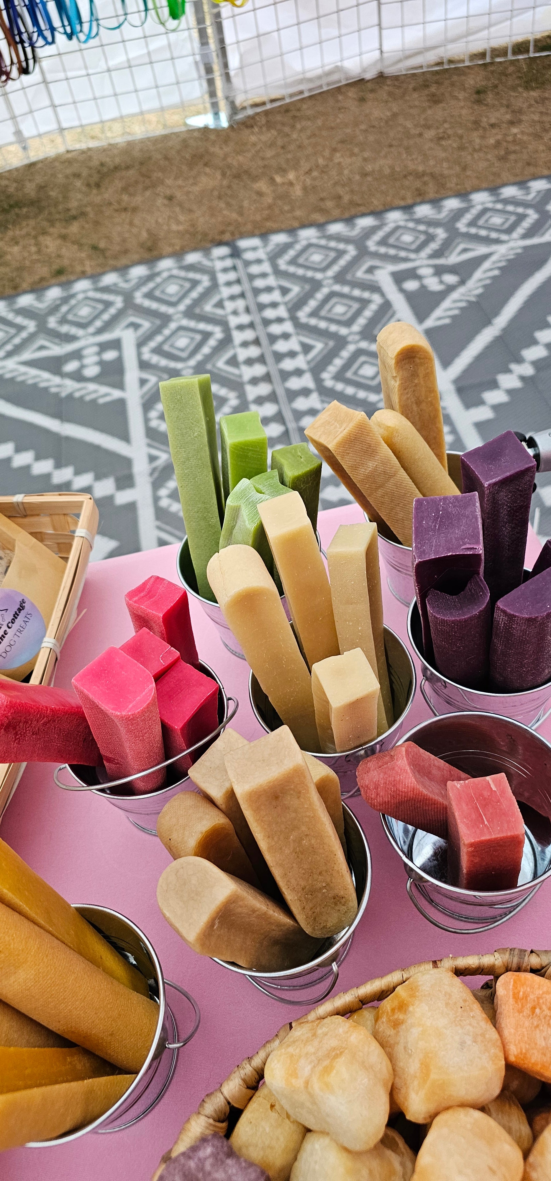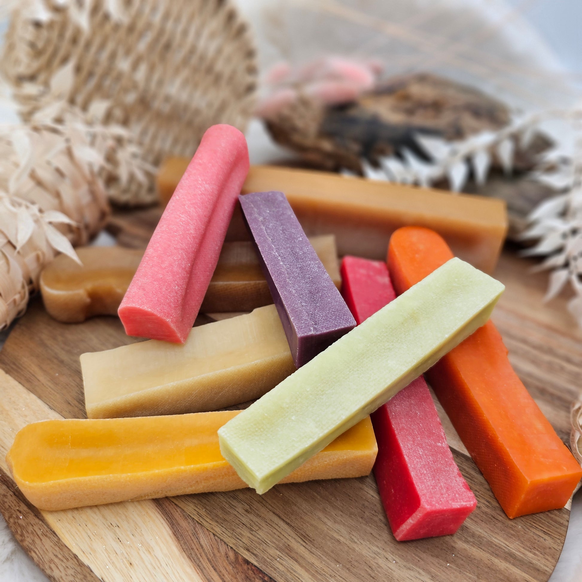 Available in a range of naturally inspired flavours โ from fruity favourites like Strawberry, Apple, Blueberry, and Mango to tasty Peanut and refreshing Mint โ thereโs a Yak Chew to suit every pupโs palate.