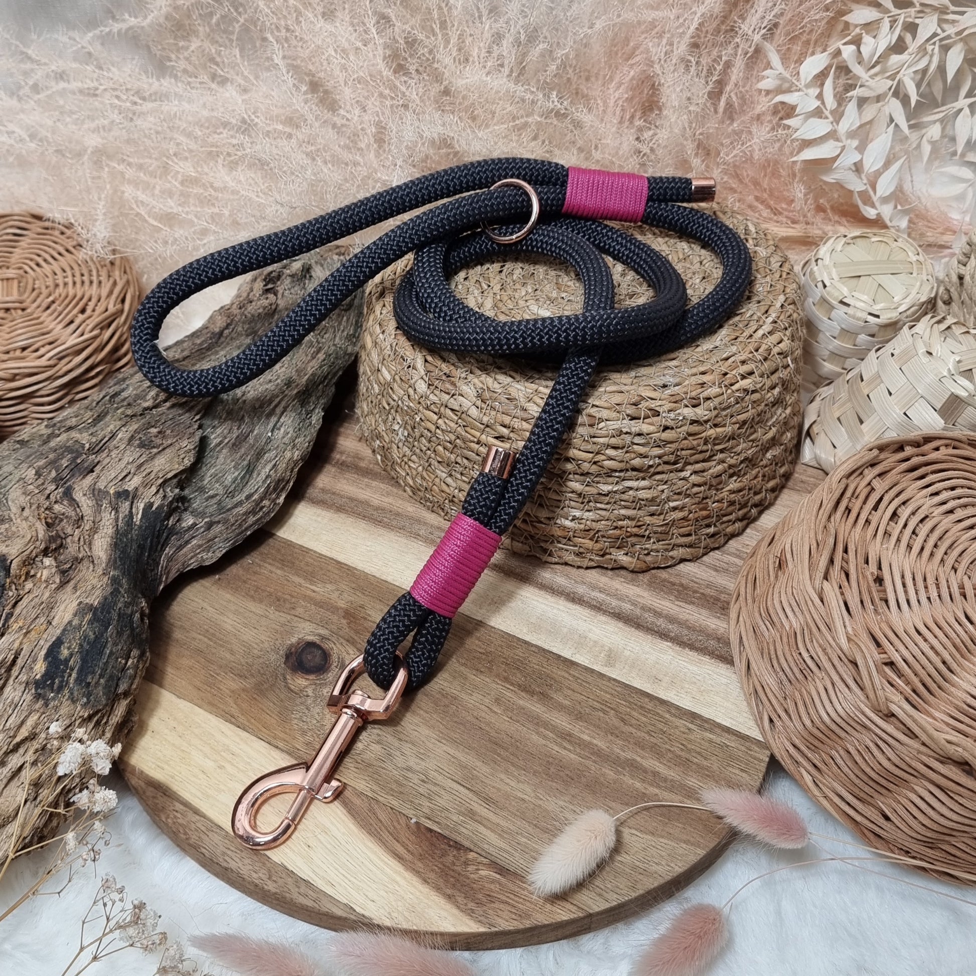 Black / Pink (RG) (120cm length) Rope Dog Lead